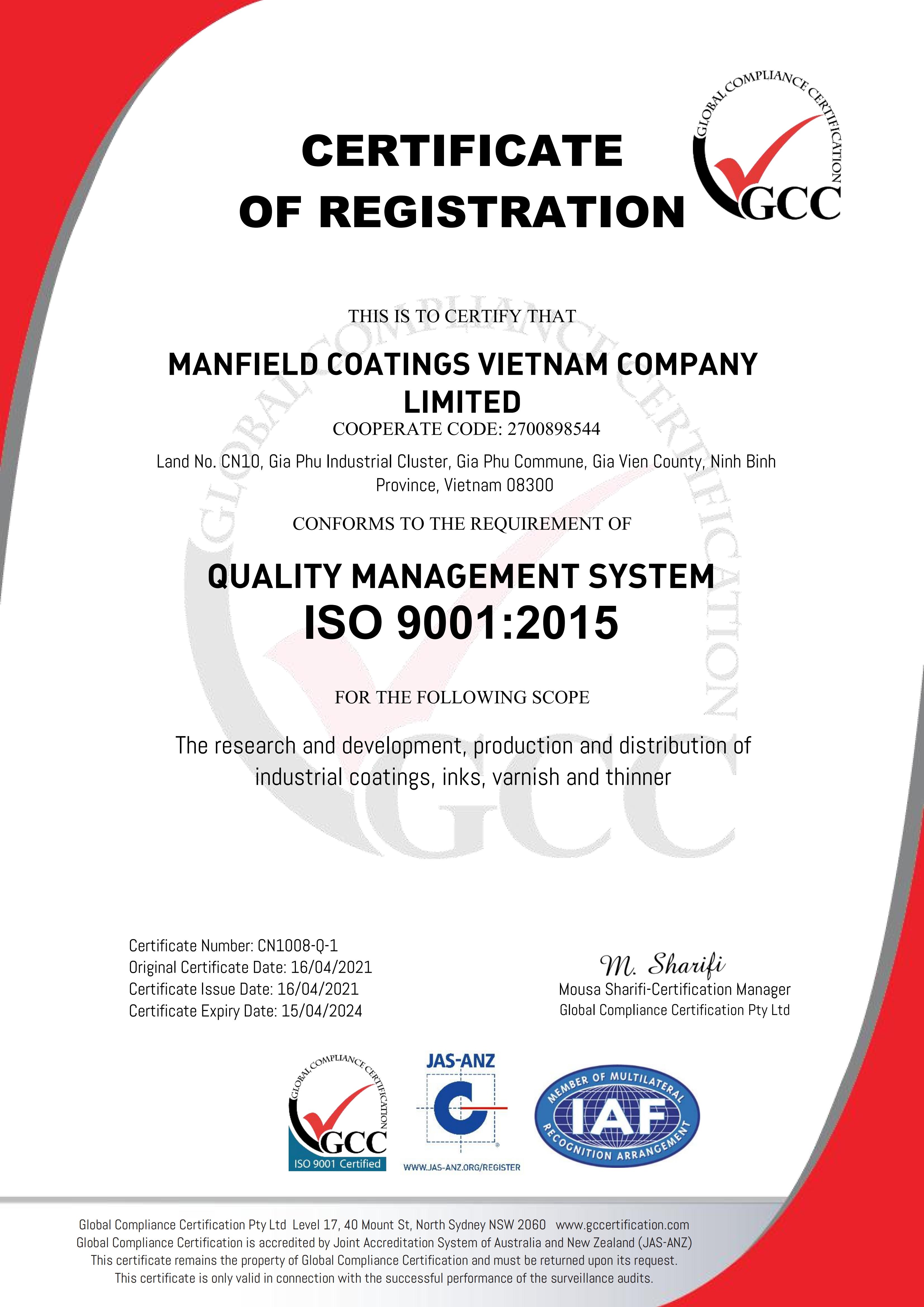 TUV ISO 9001: 2015 (Manfield Vietnam)