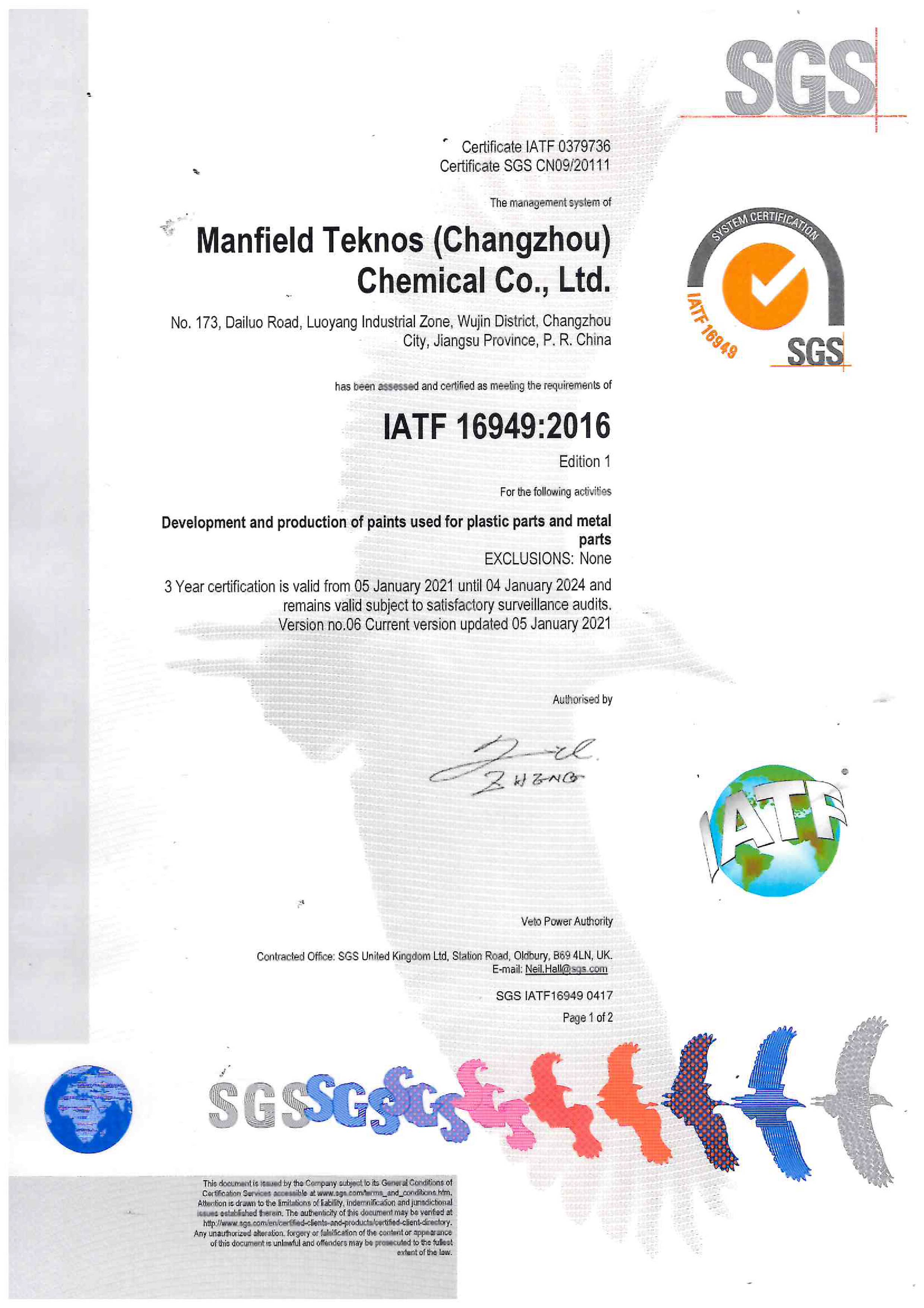 SGS IATF 16949:2016 (Manfield Tenkos)