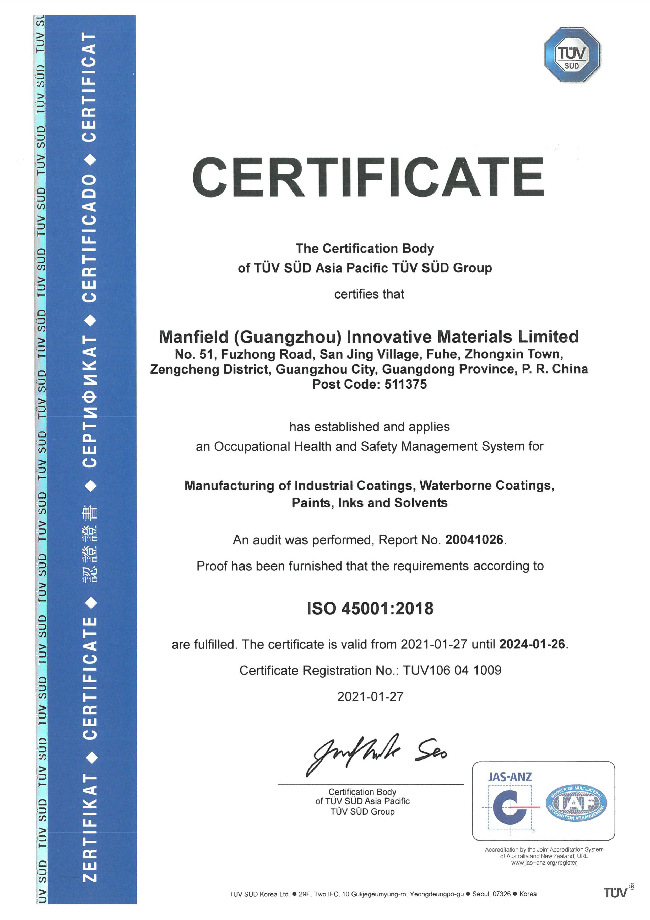TUV ISO 45001:2018 (Manfield Guangzhou)