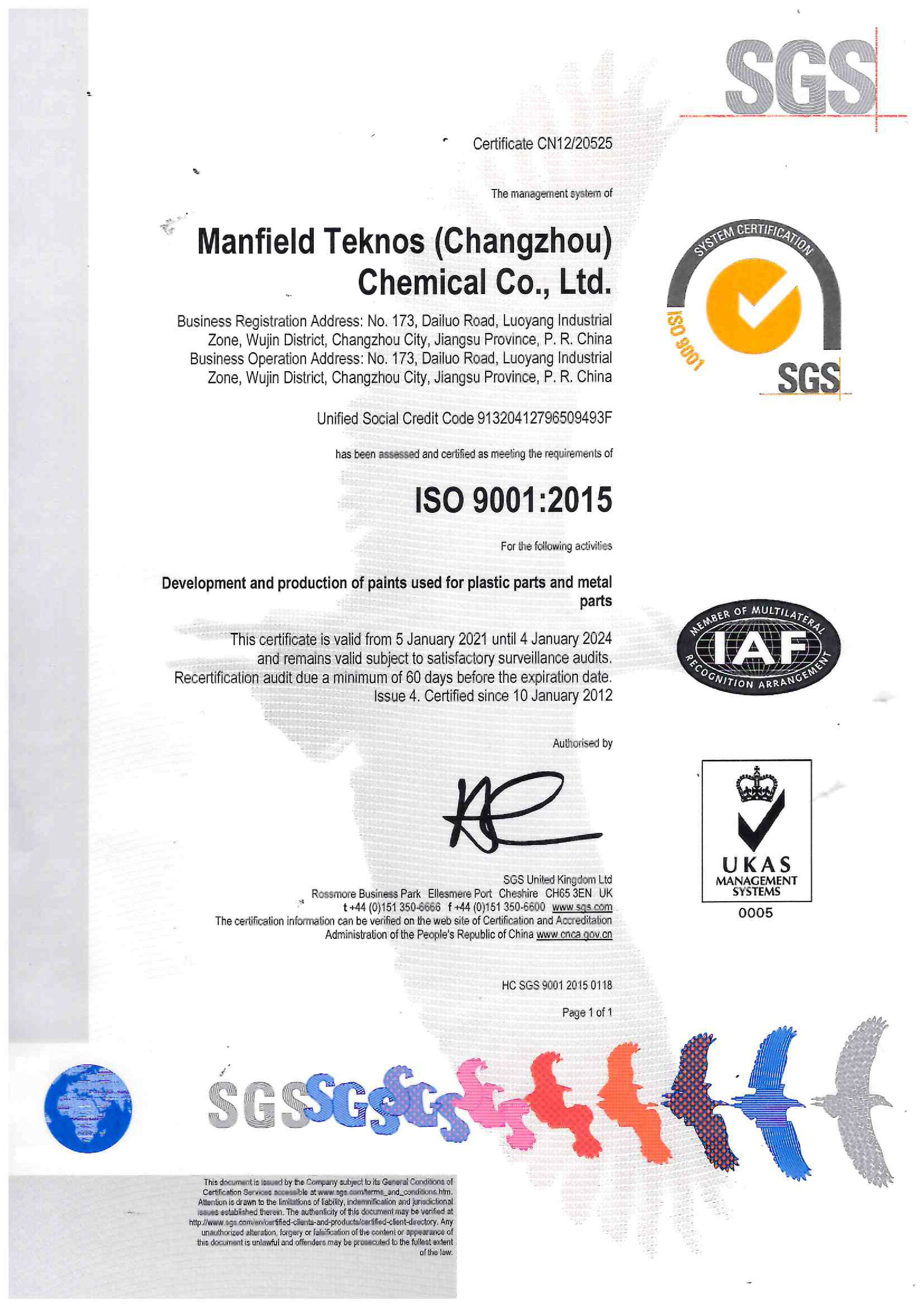 TUV ISO 9001:2015 (Manfield Guangzhou)