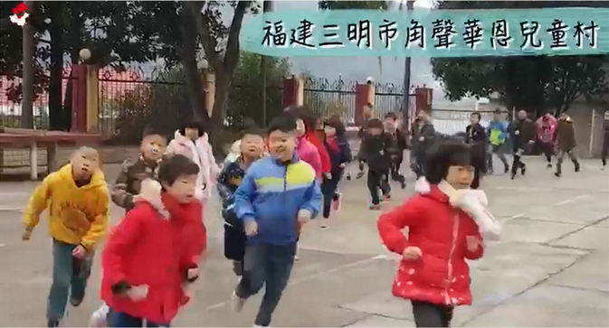 與此同時,福建三明市角聲華恩兒童村、四川綿陽市角聲華恩兒童村、廣西都安瑤族自治區華恩角聲兒童村的小朋友們也積極響應這份愛,為著目標奮力向前跑,現場大朋友牽著小朋友跑,還有的繞籃球場跑了十來圈。