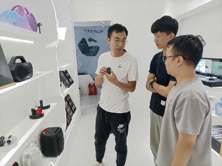 展廳參觀環(huán)節(jié),齊奧團隊為我們詳細介紹了各類產(chǎn)品的顏色設(shè)計理念與效果體現(xiàn),讓我們更進一步地了解和獲取到客戶產(chǎn)品的實際應(yīng)用和需求,以便快速精準地推薦合適的涂料色彩及特殊效果應(yīng)用。同時,我們也為客戶推薦了萬輝UV Monocoat應(yīng)用于藍牙耳機、插座和音箱等產(chǎn)品,用一涂替代原有的兩涂工藝(底漆+面漆),實現(xiàn)真正的降本減耗,且能保持很好的金屬感和耐磨性能。